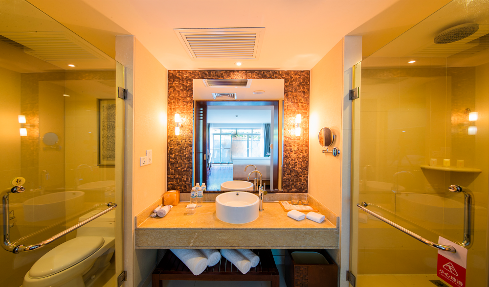 Первое впечатление: красивый и ухоженный отель с живописной территорией, водная гладь перекликается с пышной растительностью, образуя очень атмосферную картину. В свою очередь, архитектура отеля погружает в культуру великой и древней страны, с которой мне довелось познакомиться впервые. Было ли это знакомство приятным? Я расскажу свой опыт, а вы ответьте на этот вопрос сами. В путешествие на Хайнань отправились в марте вдвоем с сестрой на 14 дней. Достоинство отеля – его расположение. Он находится в уютной бухте Ялунвань (Ялонг Бэй) на второй линии, что абсолютно не мешает отдыху. Помимо вышеупомянутой эстетичности самой территории, рядом – множество кафе и развлечений для детей. Также рядом такси и остановка общественного транспорта. Большое спасибо нашему русскоговорящему гиду Пете (Библио Глобус), за помощь в вопросах коммуникации с китайцами, без него было бы туго, поскольку элементарный английский здесь знают единицы. Поскольку на этом достоинства заканчиваются, коротко о минусах: 1. В номерах на нижних этажах невыносимый запах сырости. Внутри сильно уставшая мебель и отсутствие крючков для полотенец в ванной (почему – остается только догадываться). 2. Завтраки однообразные и невкусные. Видимо так считала не только я, поскольку за время отдыха ежедневно утром наблюдала вереницу из доставщиков еды по направлению к отелю. 3. В продолжение темы еды: следует учесть, что она достаточно специфична для нашего русского ЖКТ. Если вы отдыхаете с детьми, то приготовьтесь разочароваться. Лично я под конец отпуска мечтала об отварной картошке и кефире. 4. Если выбираете данное направление для того, чтобы полакомиться местными экзотическими фруктами – рассчитывайте на финансовые вложения, в отеле достаточно скудный выбор. 5. На пляже острая нехватка лежаков и полотенец, после 9 утра их уже нет. На матрасы смотреть страшно, не то, что на них ложиться. Всё бы ничего ввиду понимания того, что заявленные 5 звезд сугубо китайские, а не международные, сравнивать ту же Турцию с Хайнанем невозможно. Как бы то ни было, я ехала в первую очередь отдыхать, получать позитивные эмоции и яркие воспоминания, которые напрочь перечеркнуло то, что нас… обворовали!!! За два дня до вылета обнаружили, что наши чемоданы вскрыты (были закрыты на кодовые замки), оттуда исчезли деньги, золотой кулон и, ВНИМАНИЕ, новый комплект нижнего белья! Вызвали полицию, сотрудники которой перетрясли все вещи, сумки, кошельки. Также просматривали камеры – кроме нас и горничной никто не входил. Всё это продолжалось в течение 3 часов, горничная также присутствовала, но была абсолютно спокойна и не участвовала в разбирательствах. Единственным человеком, пытающимся разобраться в ситуации, был наш гид Петя. Стоит ли говорить, что по итогу никто ничего не нашел? За время отдыха видели, как в соседний корпус также вызывали полицию. И теперь я предполагаю, что не только мы могли так пострадать. Друзья, будьте внимательны! Если деньги и документы можно хранить в сейфе, то где же хранить нижнее белье в этом отеле?