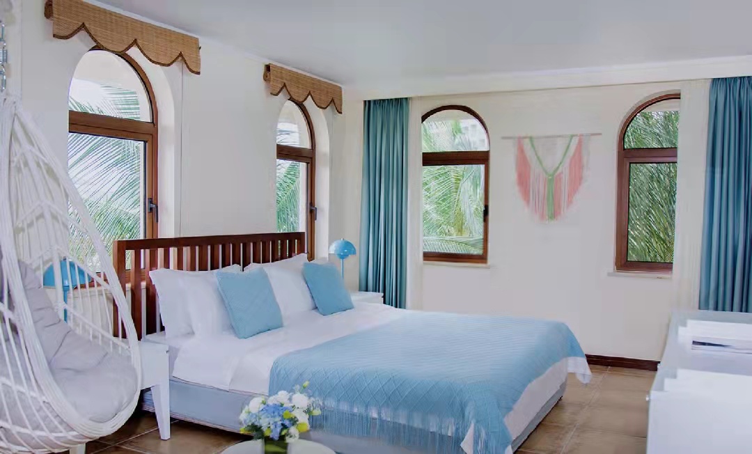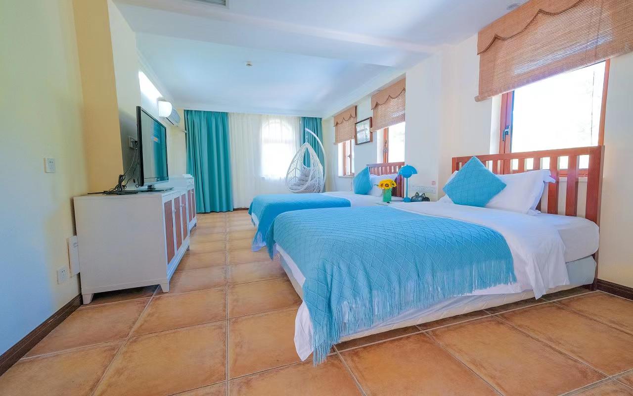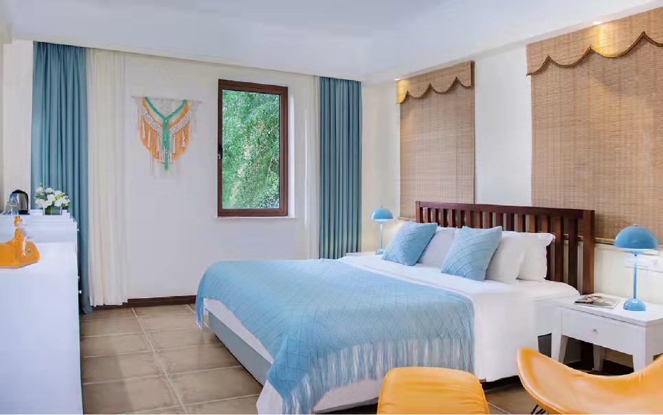 Были в этом отеле с 6 мая по 15 мая 2025 года с мужем. Самолет из Казани задержался на час и развозили долго по отелям, поэтому в отеле были уже в 10 по местному времени. На завтрак мы не успели, хотя так как улетали рано нам должны были в день приезда возместить завтрак. Раннего заселения нет, если только доплачивать. Депозит 300 юаней или 100 долларов обязательно. У нас был оплачен номер в домиках, за апгрейд номера ежедневно 100 юаней. Мы отказались. В основном здании находятся лобби, ресторан( если его можно так назвать) и номера, скорей всего более в цивильном виде. Не была не знаю. У нас номер был 6602, в домике ближе к нижней дороге. Чтобы подняться в лобби или ресторан нужно подняться много лесенок и дойти до лифта. К счастью, туда нам нужно было один раз в день. Ходить туда чаще никаких ног не хватит. Территория отеля очень зеленая. Есть бассейн. Завтрак с 7 до 9.30. Но качество завтраков так себе, мы ели в основном яйца огурцы и чай с булочкой. Были овощи тушеные, мясо свинина( мы ее не едим), на пару кукуруза, булочки. рис с овощами и лапша с овощами. Рядом с основным зданием есть магазинчик где можно купить напитки мороженое и остальное необходимое во время отдыха. Гиды сидят в лобби, не скажу что прям русскоговорящие, но немного говорит. Особой помощи не дождешься, может вызвать такси, скажет какой автобус едет до тц Ананас. Обратите внимание на направление в котором садитесь на автобус, там все по другому нужно садиться не там куда направляешься, а в противоположном. Как так не понимаем, но сами так дважды уезжали в другом направлении. В 15 минутах ходьбы от отеля находиться парк Олень повернул голову. До пляжа 10 -15 минут спокойным шагом. Номер в отеле уставший, но переночевать неплохо. Есть шкаф для одежды, огромная кровать, тумбочки, телевизор ( только китайские передачи), холодильник, кондиционер, чайник, подвесное кресло, выход на общий балкон. В ванной комнате большая душевая с тропическим душем, раковина, унитаз. Ванная нормальная, если не поднимать голову к потолку ( плесень, разводы) Зубные щетки и паста докладывают каждый день, расческа, пилка, банная шапочка. фен и две пары резиновых тапок. Два банных полотенца, два маленьких для лица. Полотенца меняют каждый день. Для ног полотенца нет, нужно просить у горничных. Кондиционер прям над кроватью, поэтому приходилось его выключать и открывать окна. Соответственно в комнату залетают насекомые, хотя в комнате стоит фумигатор, но особой пользы мы не почувствовали, использовали свои спирали. В шкафу стоит сейф. Утюга нет, не спрашивали, т к брала свой дорожный. Убираются каждый день докладывают воду две бутылочки, заварку. Для чая в магазинчике брали 5 литровую бутылку воды( 12 юаней). В комнате живет геккон, но на глаза появляется редко. Бассейн небольшой, но достаточно. Разная глубина. Работает до 9 вечера, иногда и попозже Когда прилетели и вселились, очень расстроились. Привыкли отдыхать в других отелях и на все включено. Но потом как то привыкли, приняли тот факт что это другая страна и другой тип отдыха. Чтобы переночевать совсем неплохо. Даже порадовались, что живем не в основном здании. Все отели, и дорогие и не очень идут на один и тот же пляж. Так как отель находится не на оживленной дороге, в комнате очень тихо.