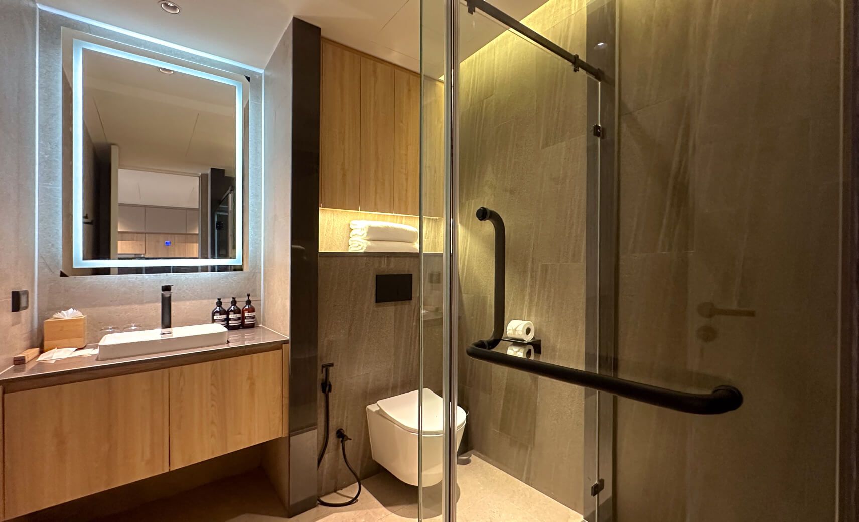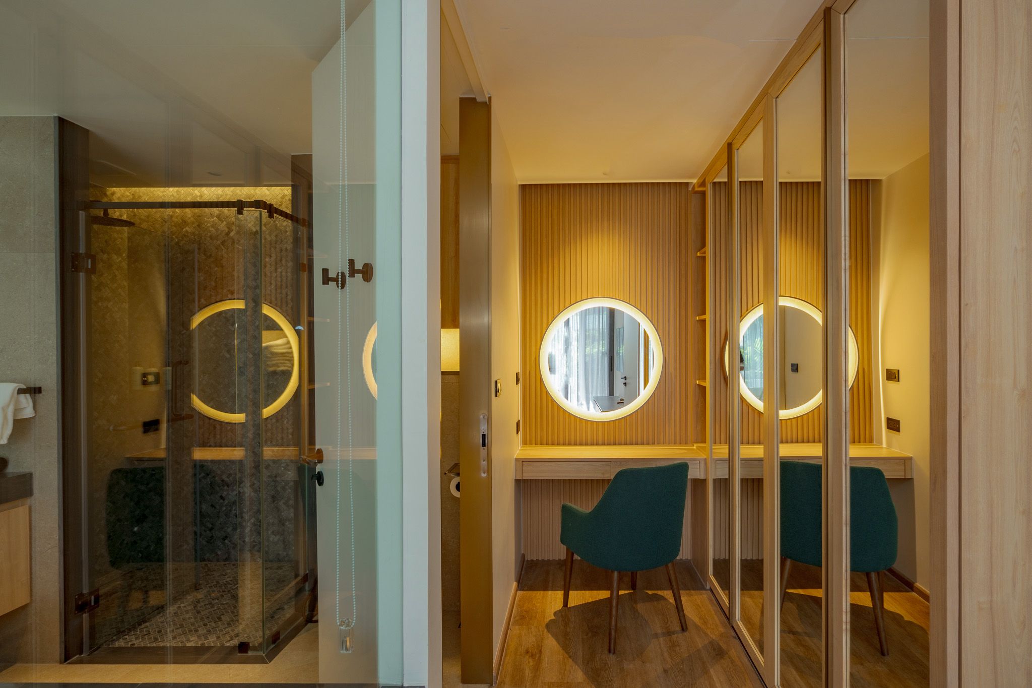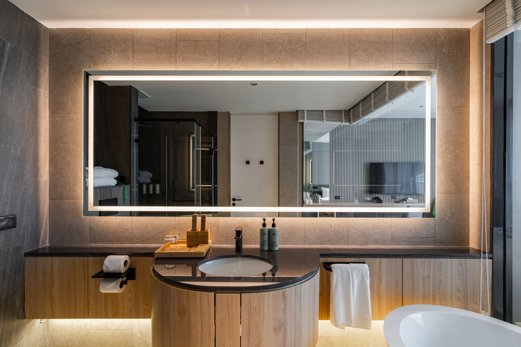 В люксе 2 спальни, гостиная с кухней, 2 ванные комнаты с душем и ванной, 2 балкона. Первая комната включает двуспальную кровать или две односпальные кровати, вторая — две односпальные кровати. В удобства включены Wi-Fi, кондиционер, телевизор, сейф, фен, туалетно-косметические принадлежности, утюг, зонтик, чайно-кофейный набор.
