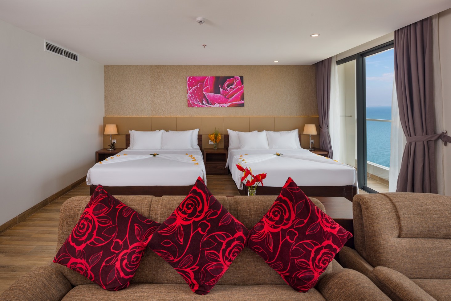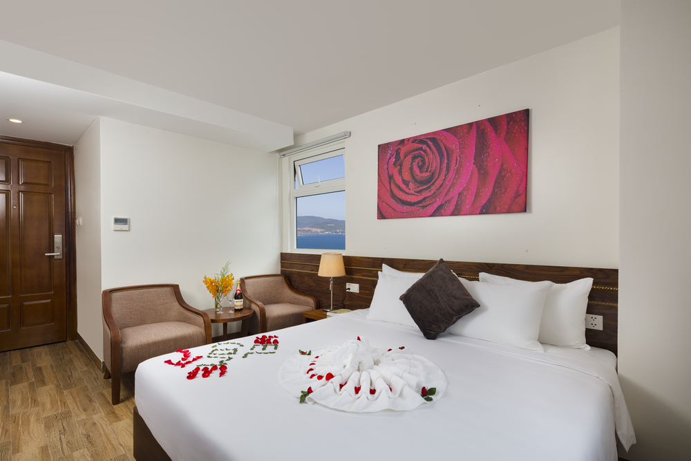 Отдыхали с женой в июле 2019 года. Во Вьетнаме, да и в Азии, были первый раз. От аэропорта до отеля не очень долго, -1 час. По приезду в отель, в номер заселили не сразу, примерно к 14:00. Примерно 1,5 часа просидели возле ресепшн в ожидании заселения. Номер выбирали (с доплатой) с видом на море и были приятно шокированы (в хорошем смысле) видами и первыми минутами в номере. Отель достаточно новый, всего несколько лет. Вид из окна потрясающий (просите последние этажи), фото номеров совпадают с реальностью. У нас был небольшой балкон, где можно было посушить вещи. В номере стандартно, ванна со всеми пренадлежнастями (мыло, шампуни, полотенца), сейф за отдельную плату, ТВ без российских каналов, стол, стулья/кресла, небольшой холодильник с мини баром за отдельную плату (прайс есть в номере). На удивление, 2 раздельные кровати для супруг, которые сдвинуть нельзя. Уборка была раз в 2-3 дня, как и везде во всех странах, желательно оставлять чаевые или можно привезти российский шоколад (во Вьетнаме его любят). Слышимость в номерах есть, в основном из-за сильно хлопающих дверей и китайцев, но не критично. Отель находится на первой линии, пляж через оживлённую дорогу. Лежаков нет, людей на пляже достаточно много, но это Азия. Вода прозрачная, водорослей, медуз и мусора не было. Питание было с завтраками. Завтраки, в основном, нацелены на китайцев. Европейской кухни мало, всё острое и быстро разбирается китайцами. Можно даже не брать питание - в Нячанге с питанием проблем нет, можно найти любую кухню, в том числе и российскую. В целом, на мой взгляд, отель оправдывает свои 3* и даже больше. По соотношению цена/качество/расположение - можно сказать что это ближе к 4*. Для Азии - это хороший отель. Если ждёте, что вам будут менять каждый день постельное, убираться и менять ванные принадлежности, то стоит задуматься о другой стране для отдыха, например Турции. Скорее всего, вернулись бы в этот отель ещё раз. Всем отличного отдыха!