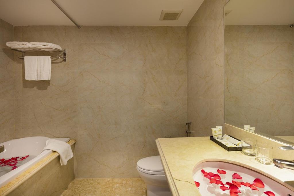 Этот отель выбрали за его расположение и номер который предложили нашей семье из 3 взрослых и ребенок, так как в этом районе уже отдыхали и менять на другой район не хотели. Расположение отличное, через дорогу море. Номер у нас был на 22 этаже семейный сьют ( 48 квадратов с двумя балконами,зона гостиной, 2 двухспальных кровати и кухня. Балконы с хорошей шумоизоляцией, в ванной тоже было маленькое окошечко, поэтому всё высыхало моментально, т.к. была постоянная циркуляция воздуха. Уборка номера была на "3". Шампуни, гели, щетки пасту подкладывали, если у нас не стояли с прошлого раза бутыльки. Постельное меняли 1 раз за 2 недели, больше и не нужно было, оно чистое было. С 18-22 этажи идут семейные номера, поэтому на этажах всего по 4 номера. У нас было не шумно на этаже. На 23 этаже бассейн, вода холодная, дети не хотели там купаться, им поправилось на море больше, чем в бассейне, да м смысла сидеть там не вижу, когда море в 100 метрах. На рецепшне вполне приятные люди работают, всегда улыбаются и если о чём либо просишь сразу помогают. Питание нам тоже понравилось, давали тушёную картошку с мясом, пельмешки маленькие, спагетти с сыром и ветчиной, жареная картошка с беконом, курица или рыба в сухарях, рис с овощами, суп Фо, яйца жарили, бисквиты к чаю 1-2 вида, фрукты 2-3 вида ежедневно ( арбузы, бананы, ананас, маракуйя, один раз была папайя. Салаты 3-4 видов и помидоры, огурцы зелень. Сыр, 3 вида колбасы. Соки персиковый и апельсиновый но разбавлены водой. Чай и кофе сгущенка. Мы всегда находили, что покушать. Уходили в тот зал, где сидят в основном русские и нет кричащих китайцев. Приходили на завтрак рано к открытию в 6.30.после сразу на море.... В обед кушали в Туане или ходили в Морячок. Пару раз ходили в Гриль Гарден который на первой линии, нам очень понравилось, советую тем кто хочет попробовать разные морепродукты за 240т.донгов всё включено, алкоголь можно свой. Официанты постоянно подходят помогают жарить. Если ехать с позитивом, то отдых обязательно будет отличным... Нашей семье в этом отеле ооочень понравилось, мы бы выбрали вновь этот отель.